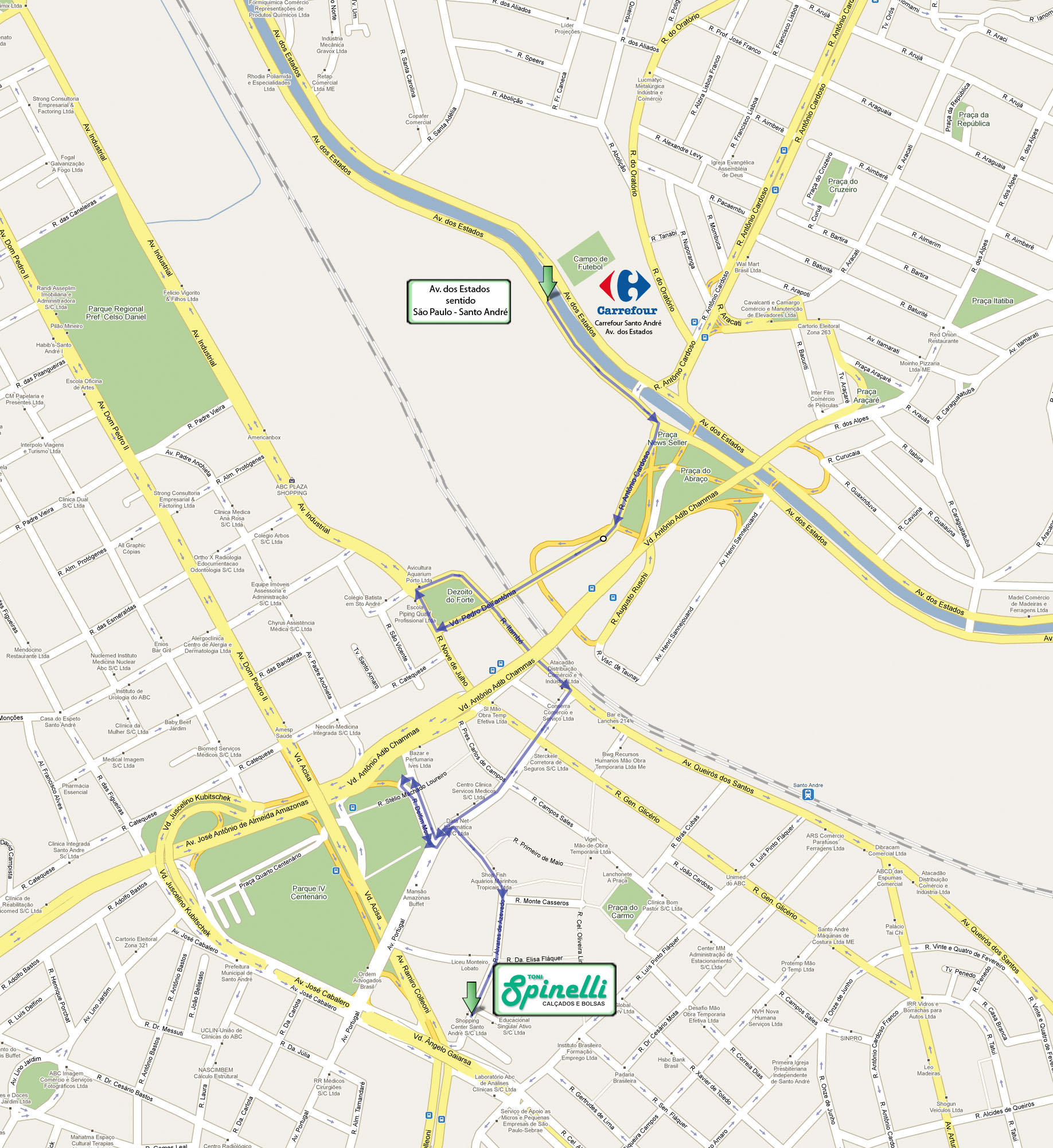Siga na Av. dos Estados até a altura do Carrefour Santo André |